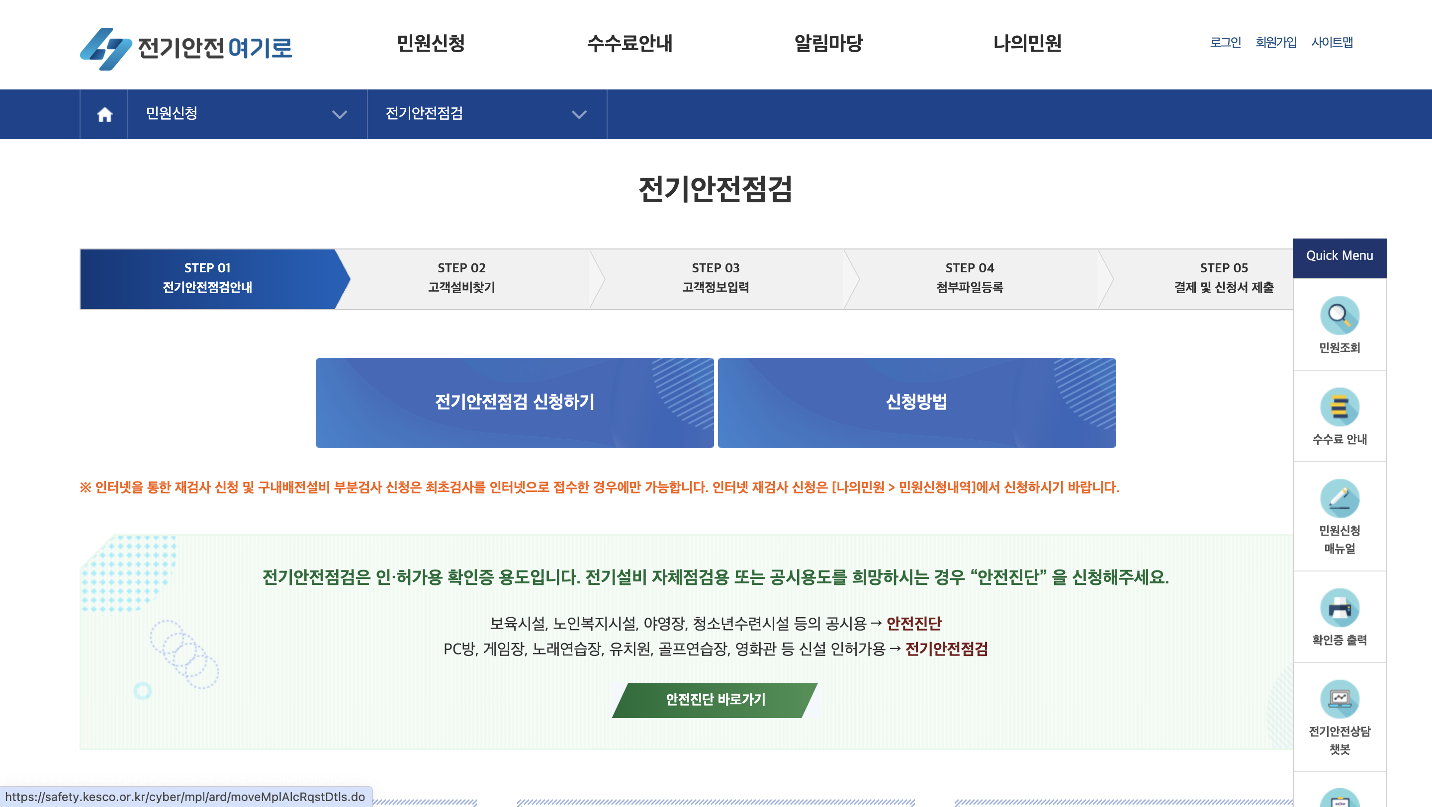 전기 안전 점검 신청은 아래와 같은 방법으로 진행할 수 있습니다.